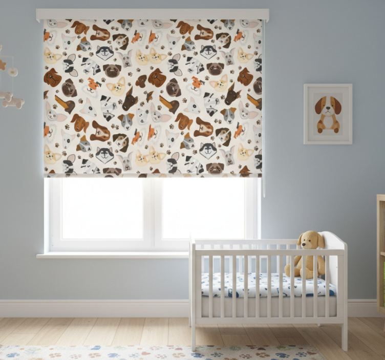Roletai vaikų kambariui su mielų šuniukų raštu