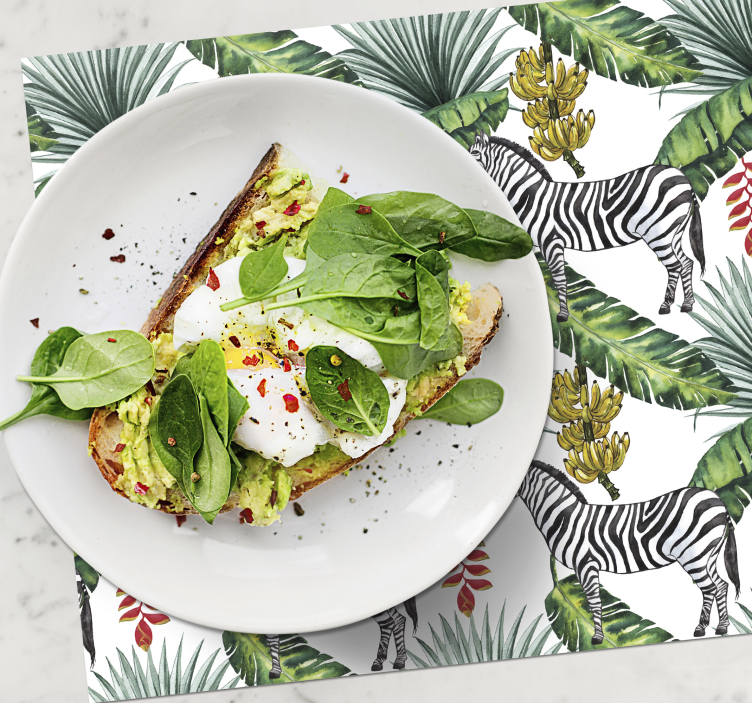 Tekstūruoti stalo padėkliukai zebra lapų raštu