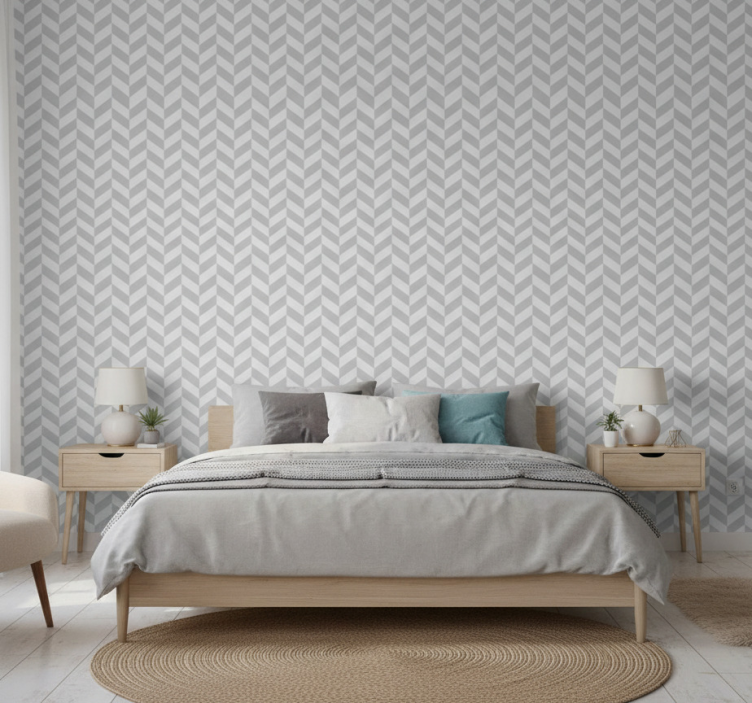 Skandinaviški tapetai baltu ir pilku zigzagu