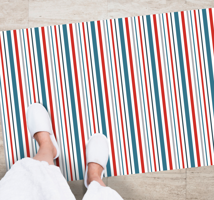 Dryžuotas vinilo kilimas su ryškiu raštu