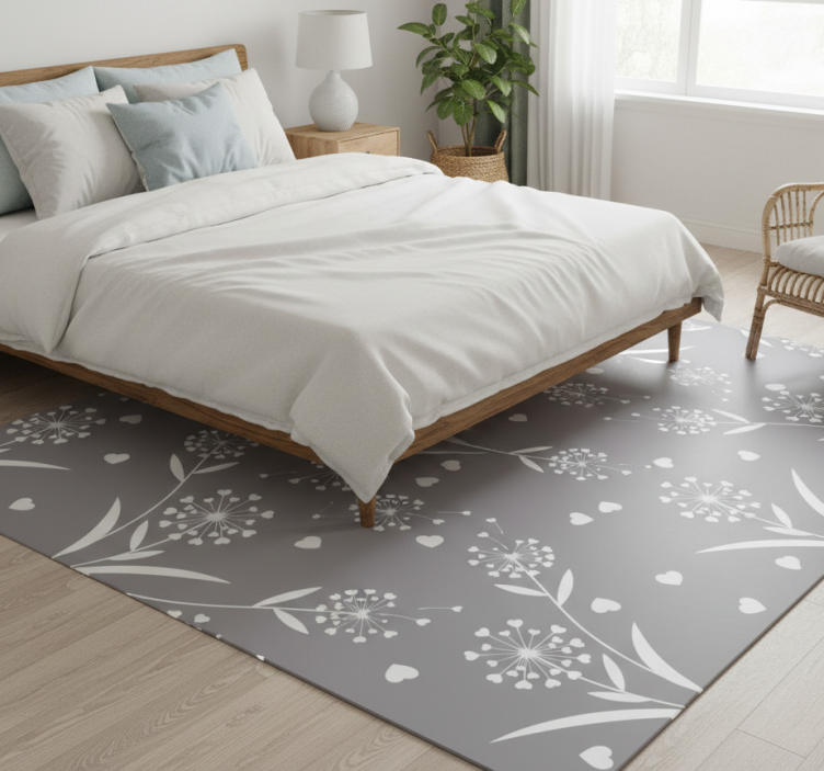 Gėlių rašto kilimėlis baltieji pūkai