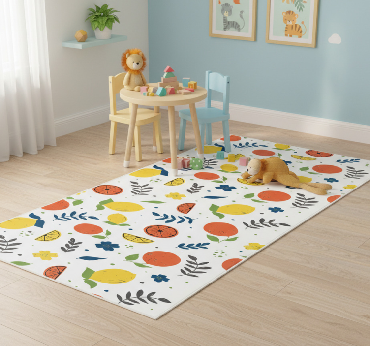 Gyvūnų vinilo kilimėlis su citrusiniais vaisiais ir lapais puikiai tinka bet kokiam interjero stiliui. Jo žaismingas dizainas ir ryškios spalvos gali akimirksniu atgaivinti erdvę, suteikdamos jai gyvybingumo ir energijos. Šis gyvūnų vinilo kilimėlis ne tik atrodo puikiai, bet ir yra praktiškas pasirinkimas, nes jis lengvai pritaikomas įvairiose patalpose, o jo unikalus dizainas patraukia dėmesį. Pasirinkę šį kilimėlį, suteiksite savo namams šilumos ir jaukumo!