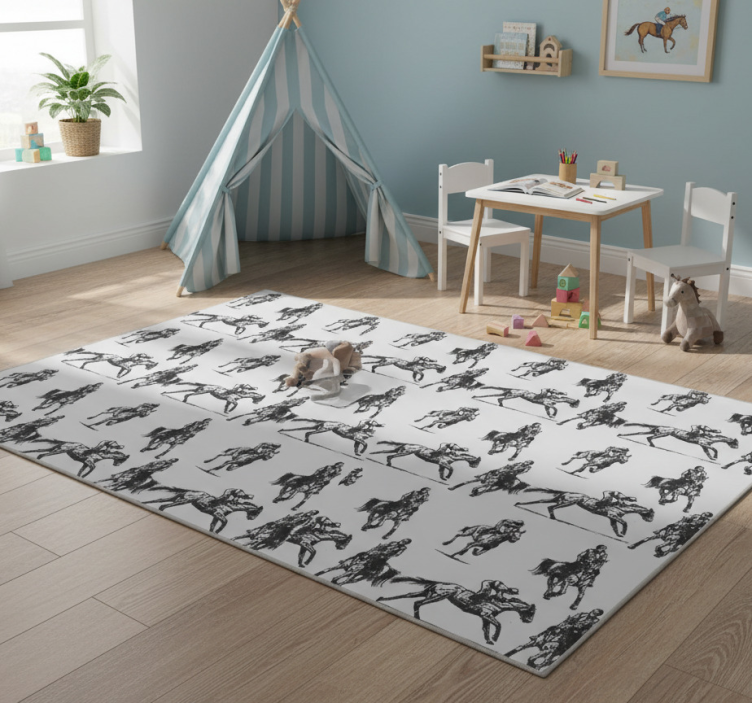 Gyvūnų vinilo kilimėlis su pilkais vakarų arkliais