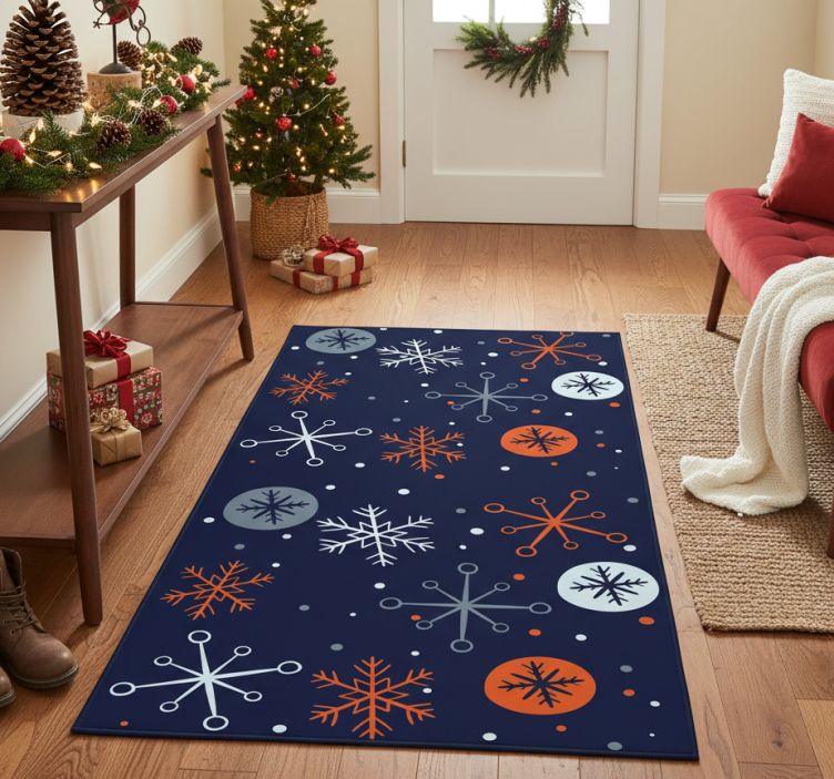 Kalėdinis kilimėlis mėlynų ir oranžinių snaigių