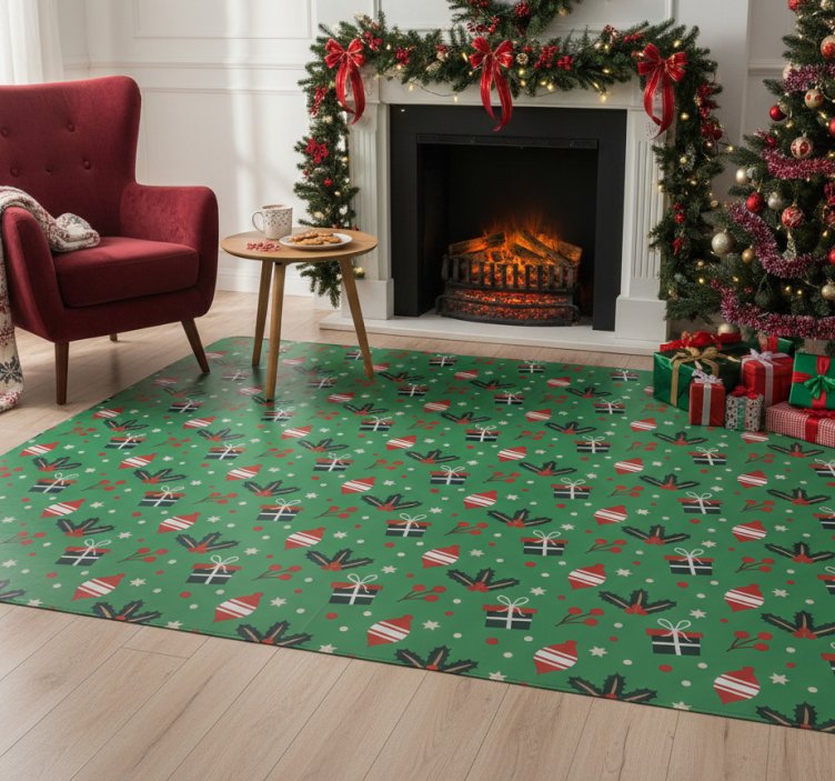 Kalėdinis kilimėlis su žaliu saldainių raštu