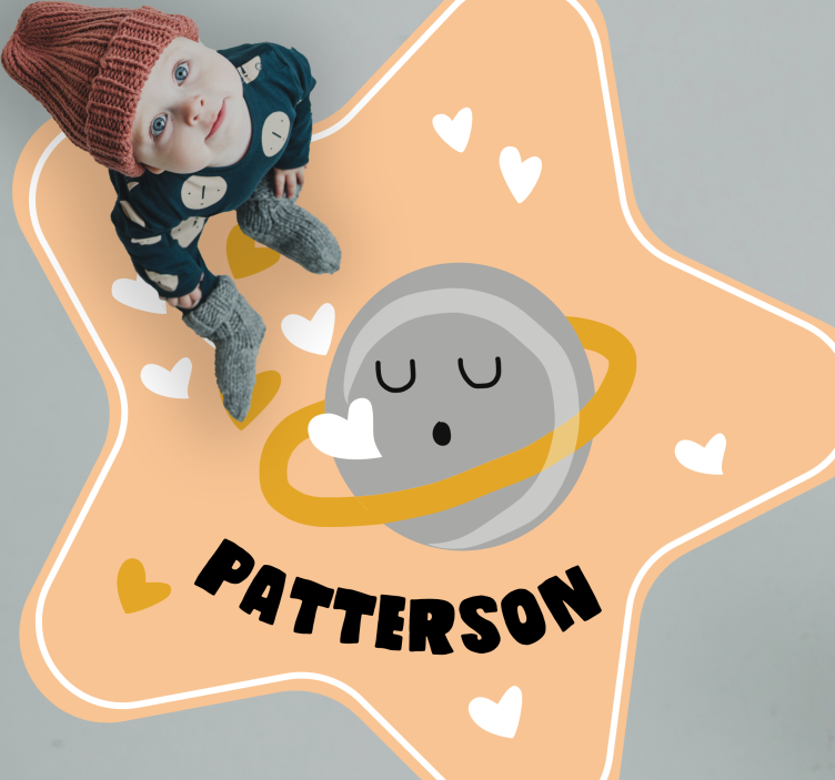 Informacija: R18846Žaismingas žvaigždės formos dizainas, kuriame vaizduojama ramybės planeta, apsupta žiedo. Fonas puošia širdelės, sukurdamos malonią atmosferą. Personalizavimo parinktis išryškina vardą paryškintai, suteikdama dizainui asmeninį prisilietimą.