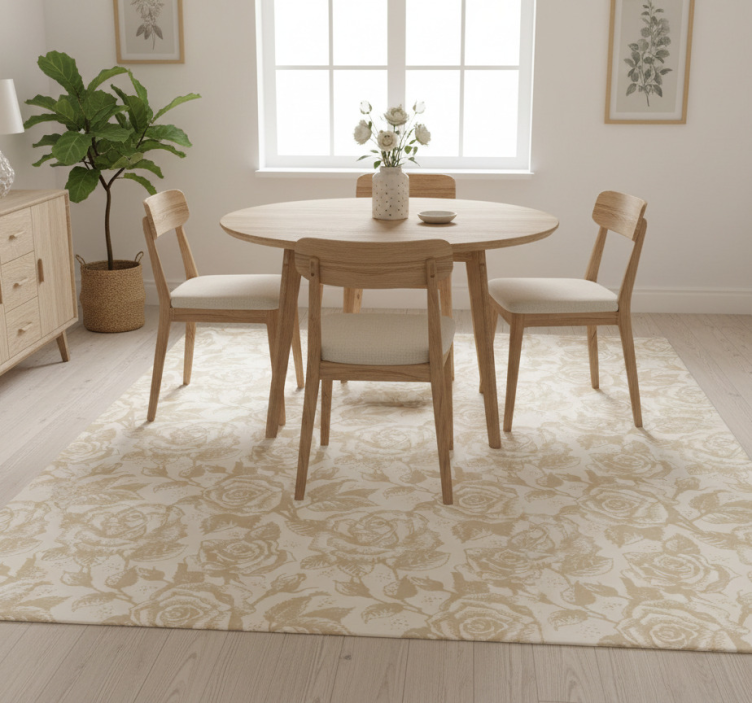 Valgomosios kambario kilimas su bežinėmis vintage rožėmis