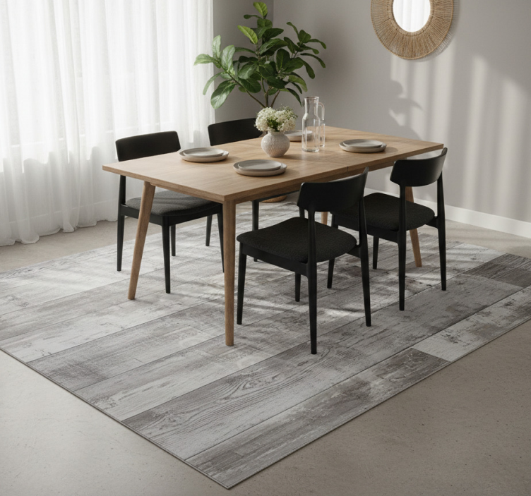 Valgomosios kambario kilimas iš pilkų medžio lentų idealiai tinka dekoravimui, nes jo universalus dizainas puikiai derės su įvairiais interjero stiliais. Šis kilimas ne tik papuoš Jūsų valgomojo erdvę, bet ir sukurs šiltą atmosferą, leisdamas Jums ir Jūsų šeimai jaustis patogiai. Be to, jo natūrali spalva ir medžio faktūra suteikia galimybę lengvai derinti su kitais baldais ir dekoro elementais. Pasirinkus šį kilimą, Jūs pasirinksite ne tik estetiką, bet ir praktiškumą!
