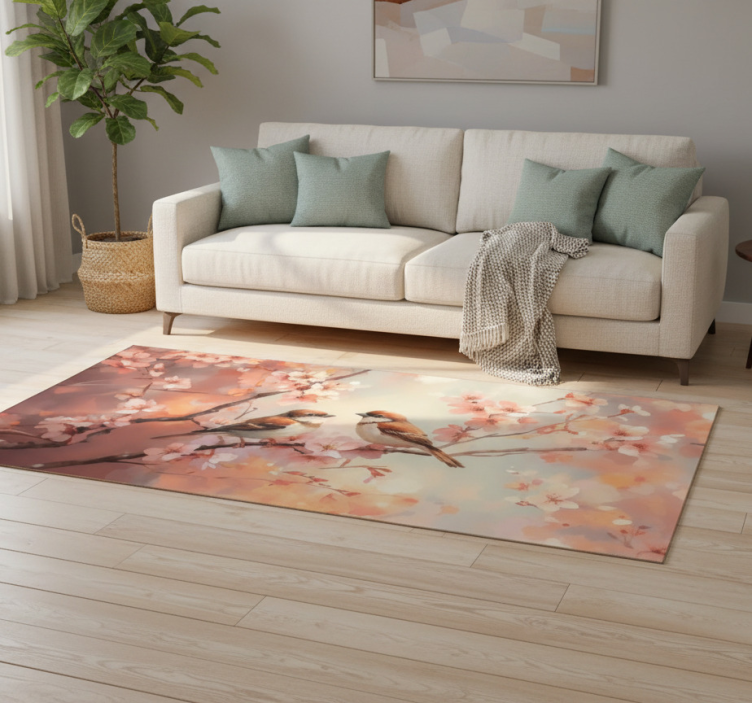 Vinilinis kilimas svetainei dviem paukščiais ant šakos